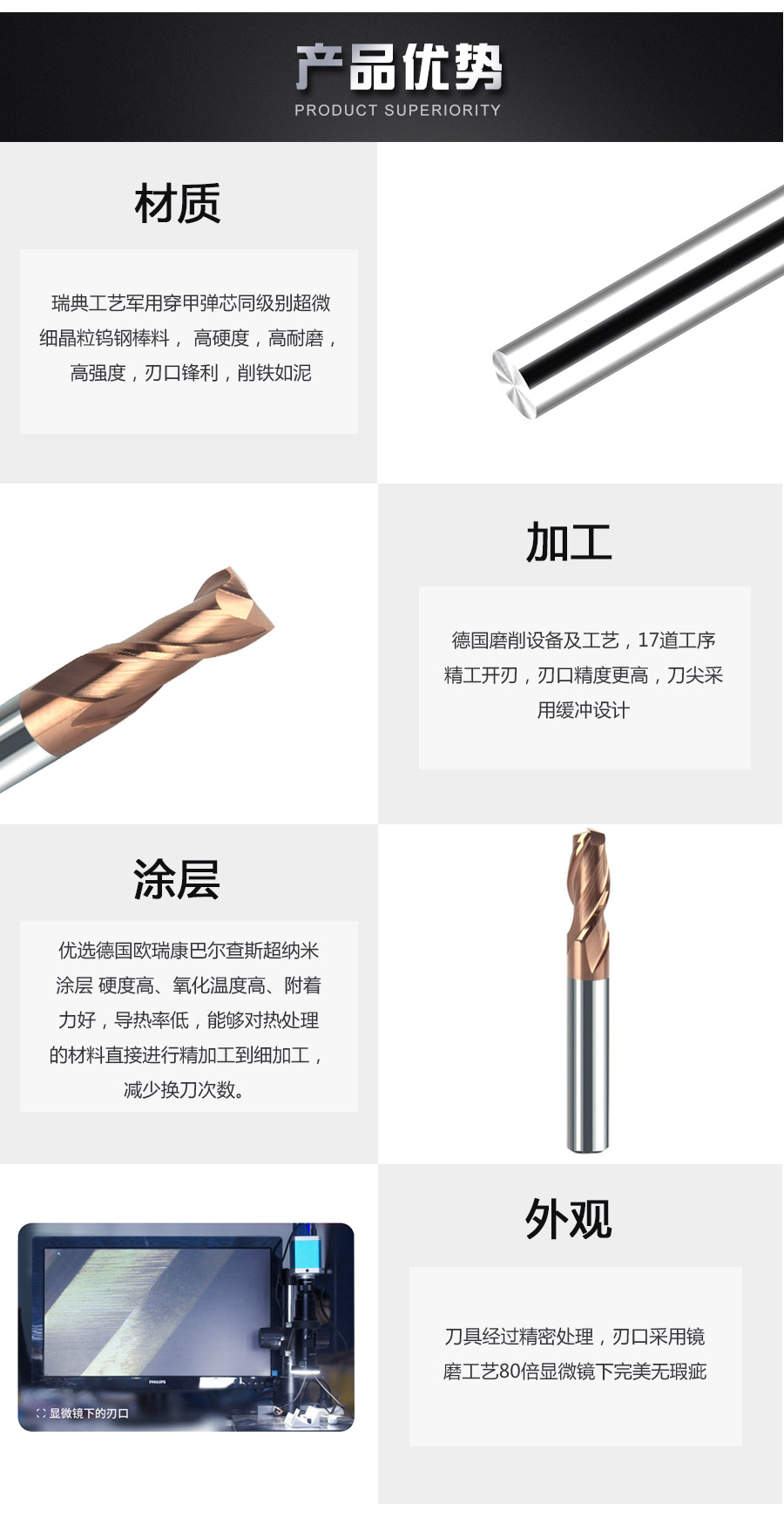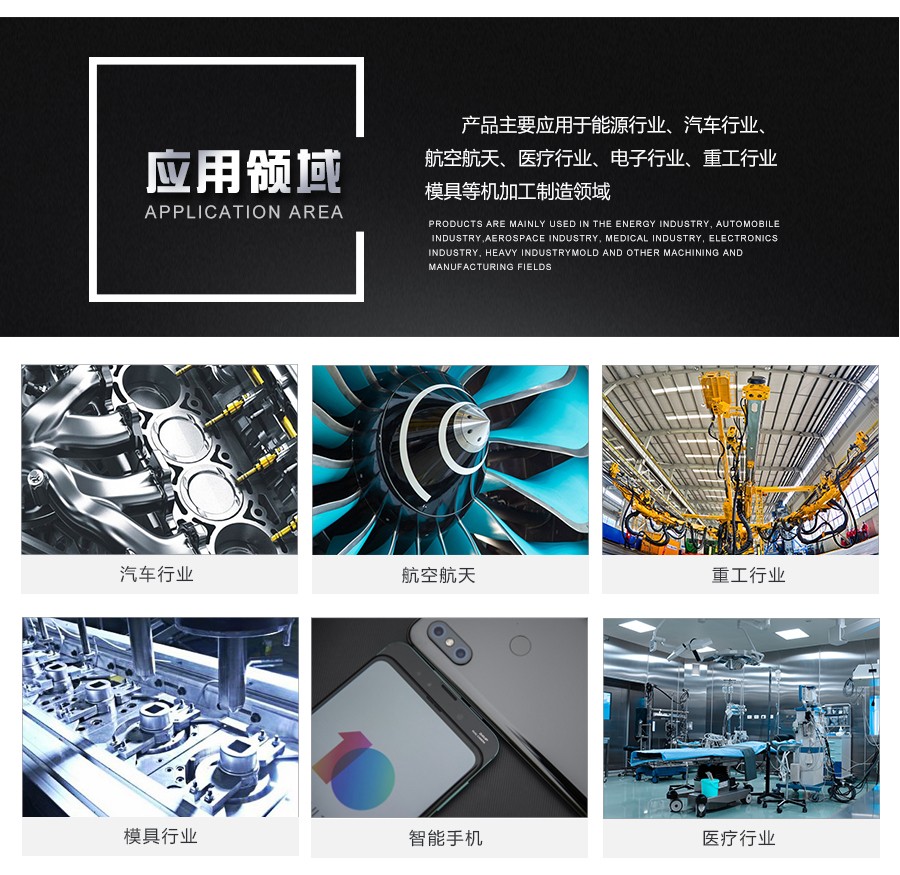碳素钢、合金钢、铸铁、球墨铸铁、预硬钢(≤50HRC) 不锈钢、钛合金、耐热合金、预硬钢、淬硬钢(≤55HRC)